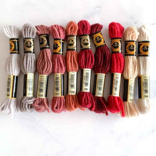 We recommend to use yarn lengths of around 45-50 cm to prevent fraying and wearing while stitching. For large areas of the same colour,it’s best to use skeins from the same dyelot.