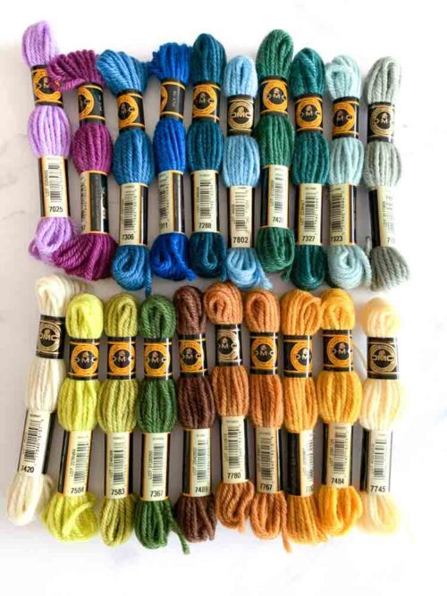 DMC Tapestry Wool is a twisted 100% soft, virgin wool which offers excellent canvas coverage (canvas 10 to 14 count) and a smooth, even texture. Perfect for making cushions , wall hangings, tote bags clutches and more. You can also use it to add details to your punch needle project.