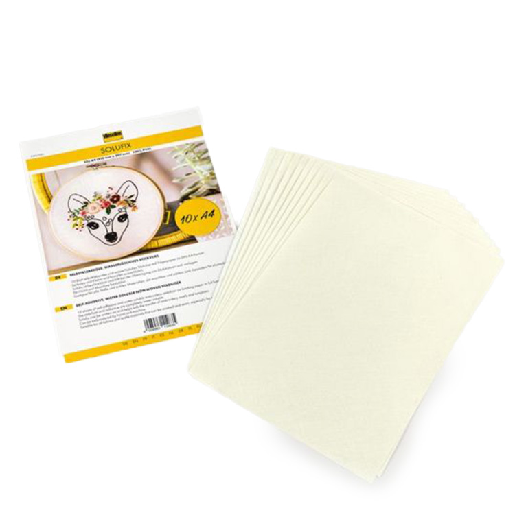Dit zijn 10 A4 vellen Solufix. Deze soort vlieseline is perfect voor het overtrekken van je patronen op je stof. Je kan direct op het materiaal tekenen, en het zelfs gebruiken met een inkjet printer.