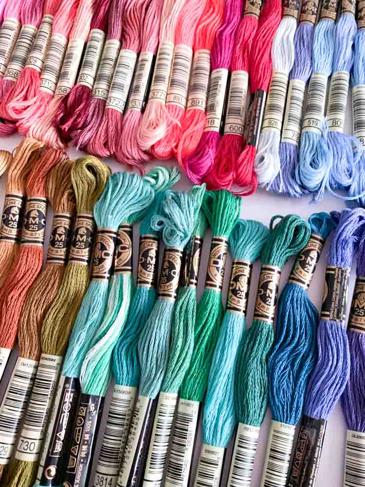 50 strengen borduurgaren. Deze strengen bevatten 8 meter garen. Mouline borduurgaren kan in 6 draadjes worden gesplitst.