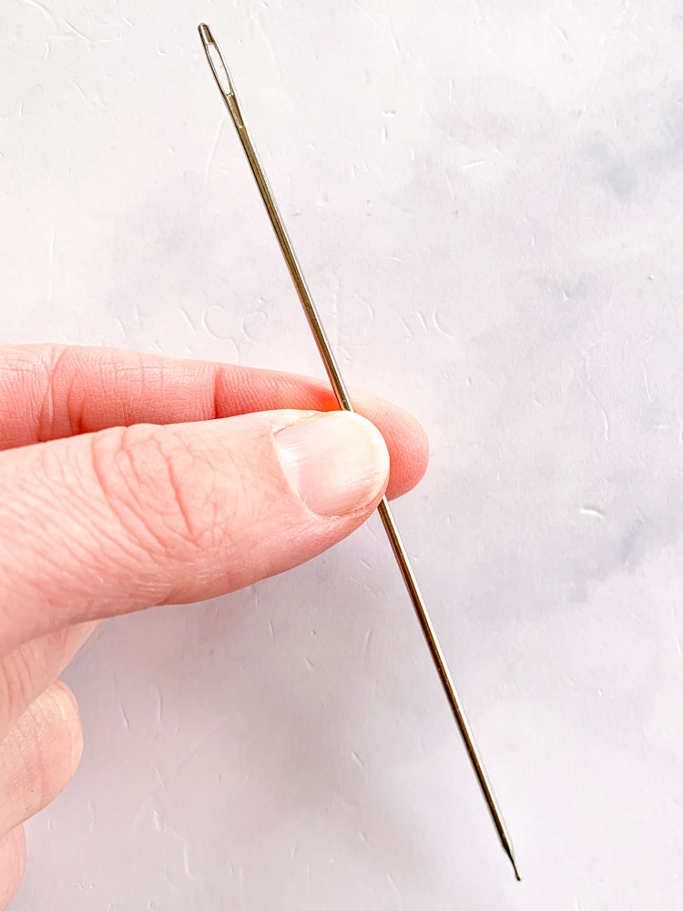 Een hoogwaardige grote bolletjesnaald voor het repareren van breiwerk of voor weven. Dit is een grote naald met een lengte van 120 mm en een dikte van 1,6 mm.