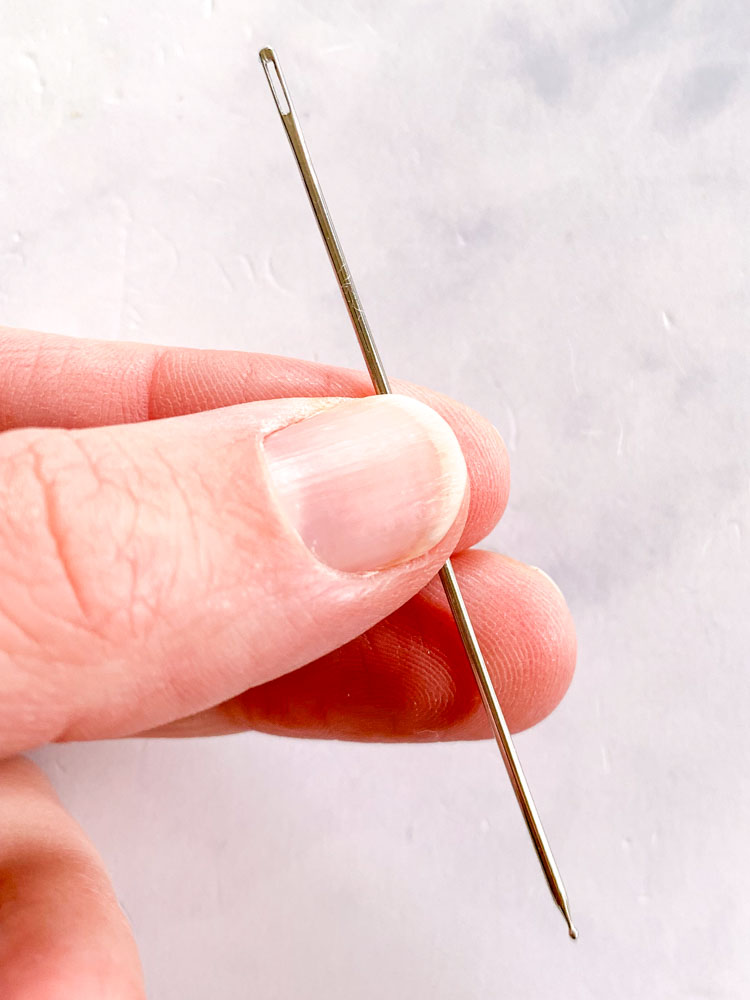 Een hoogwaardige bolletjesnaald voor het repareren van breiwerk. Dit is een middelgrote naald met een lengte van 74 mm en een dikte van 1,2 mm.