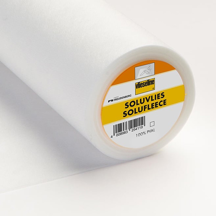 Deze stofachtige, wateroplosbare versteviging is ideaal om op te tekenen, te borduren en vervolgens weg te wassen, waarbij het ontwerp achterblijft. Dit product staat bekend onder vele namen – ook wel solusheet, wash and gone, solvy, wateroplosbare stof genoemd.